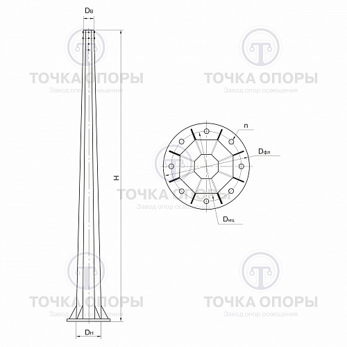 ОГКСф-400-8,0 – опора граненая коническая силовая фланцевая предназначена для организации наружного освещения.