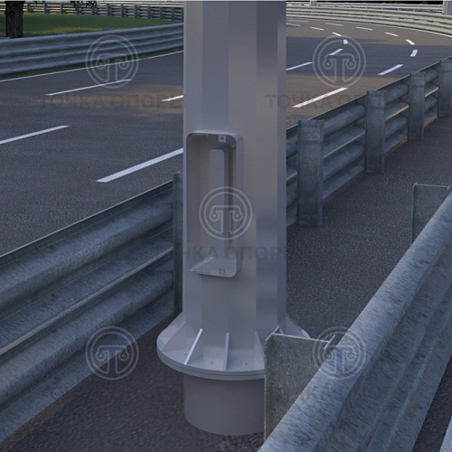 Опора ОГКСф-400-8,0 не предполагает контакта ствола с грунтом. Конструкция опор ОГКСф имеет фланцевую часть, которая крепится в специальный закладной элемент. Последний представляет собой часть фундамента опор, заранее монтируемую и фиксируемую в грунте. Граненая коническая силовая фланцевая опора закрепляется в закладном элементе при помощи системы шпилек и болтов. В случае необходимости проведения ремонтных работ закладной элемент фундамента опор обычно остается в грунте, что облегчает процесс их обслуживания.